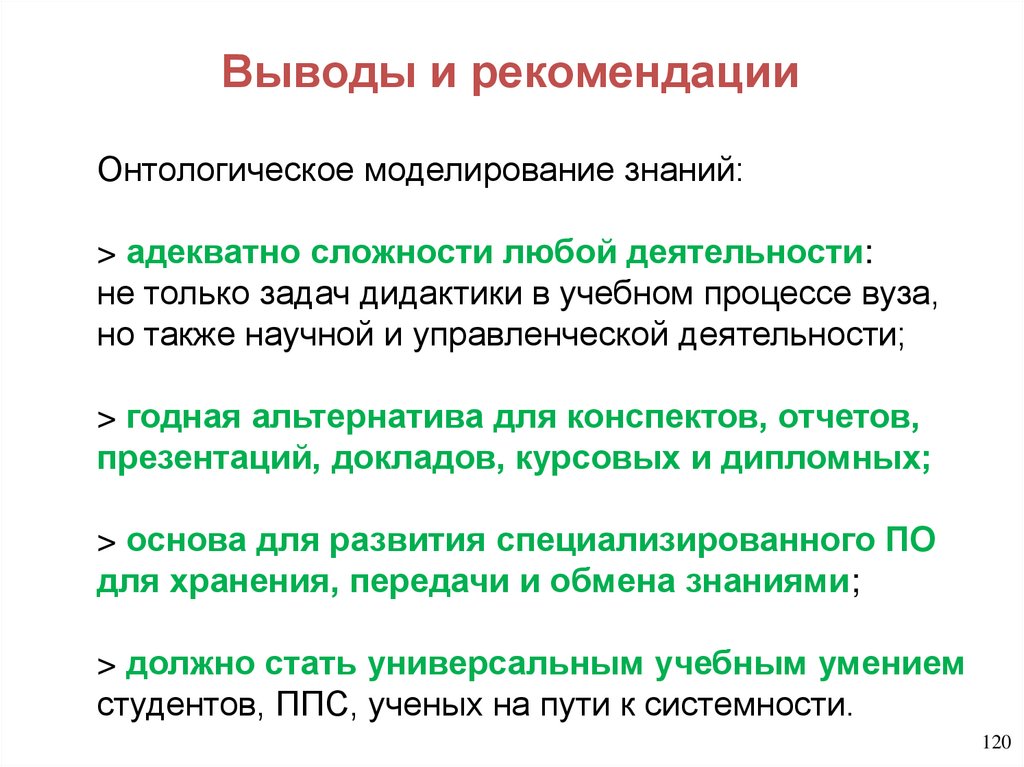 Выводы и рекомендацииОнтологическое моделирование знаний: