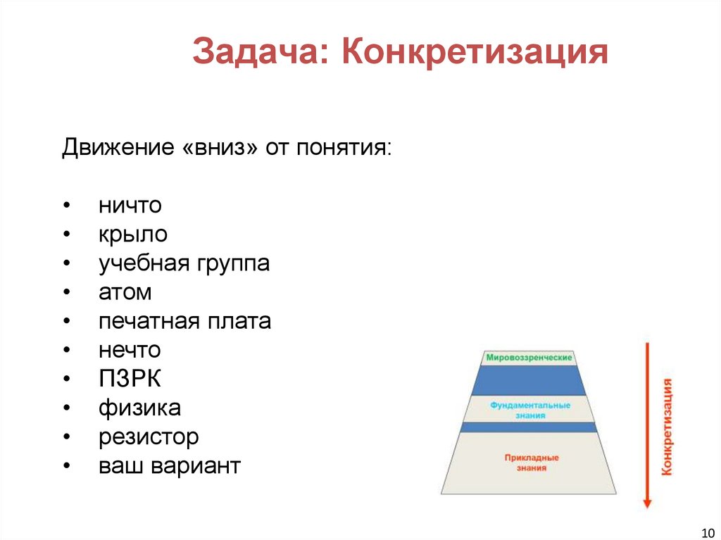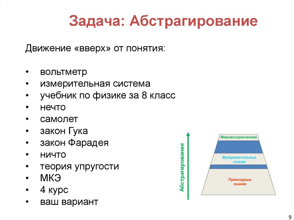Задача: АбстрагированиеДвижение «вверх» от понятия: