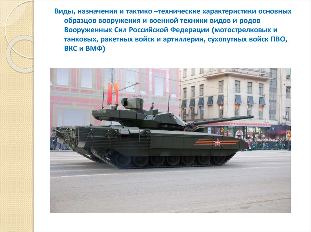 Виды, назначения и тактико –технические характеристики основныхобразцов вооружения и военной техники видов и родов