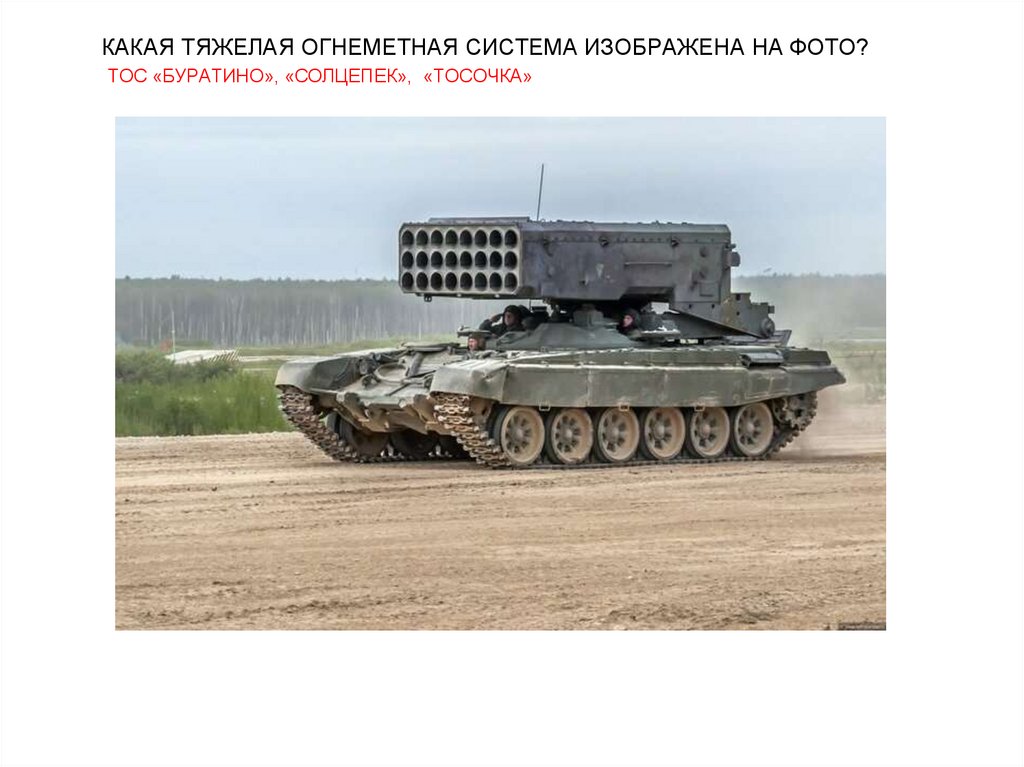 КАКАЯ ТЯЖЕЛАЯ ОГНЕМЕТНАЯ СИСТЕМА ИЗОБРАЖЕНА НА ФОТО?ТОС «БУРАТИНО», «СОЛЦЕПЕК», «ТОСОЧКА»