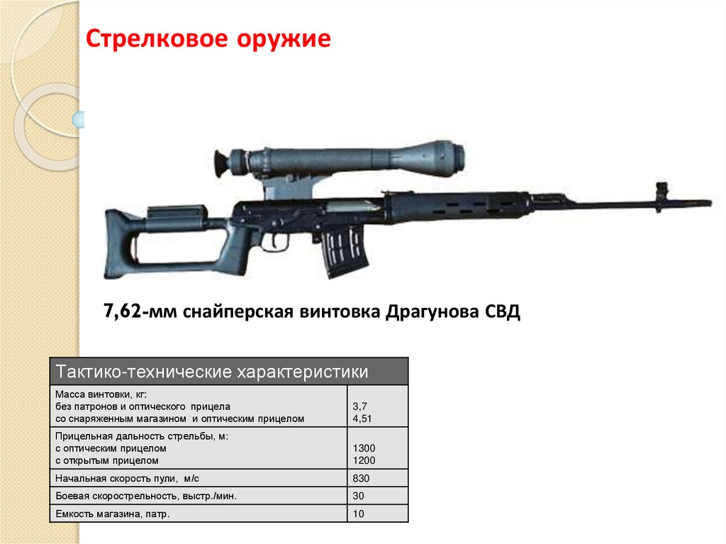 Стрелковое оружие7,62-мм снайперская винтовка Драгунова СВД