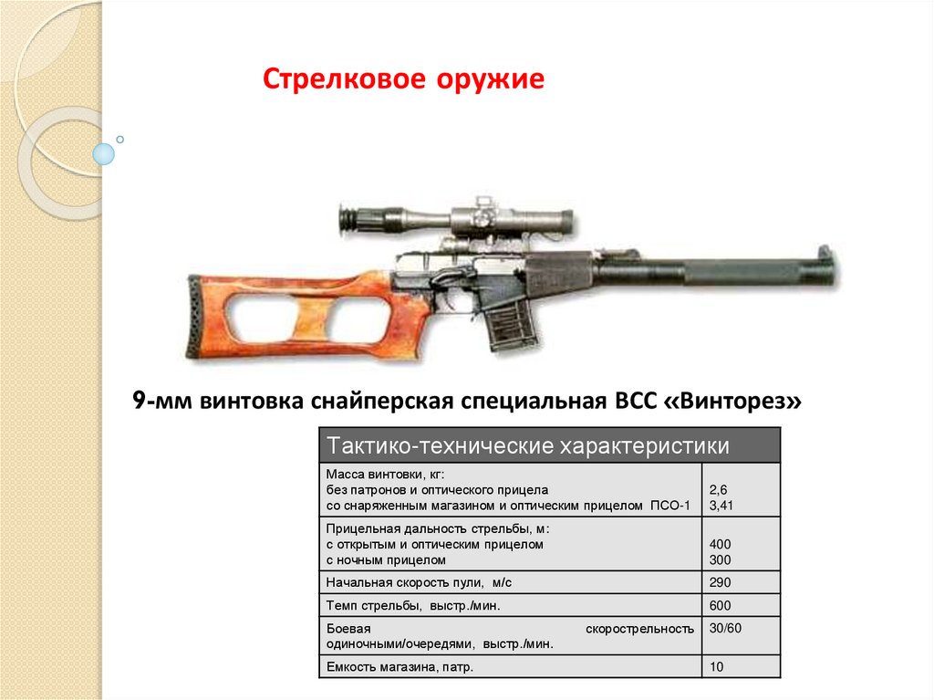 Стрелковое оружие9-мм винтовка снайперская специальная ВСС «Винторез»