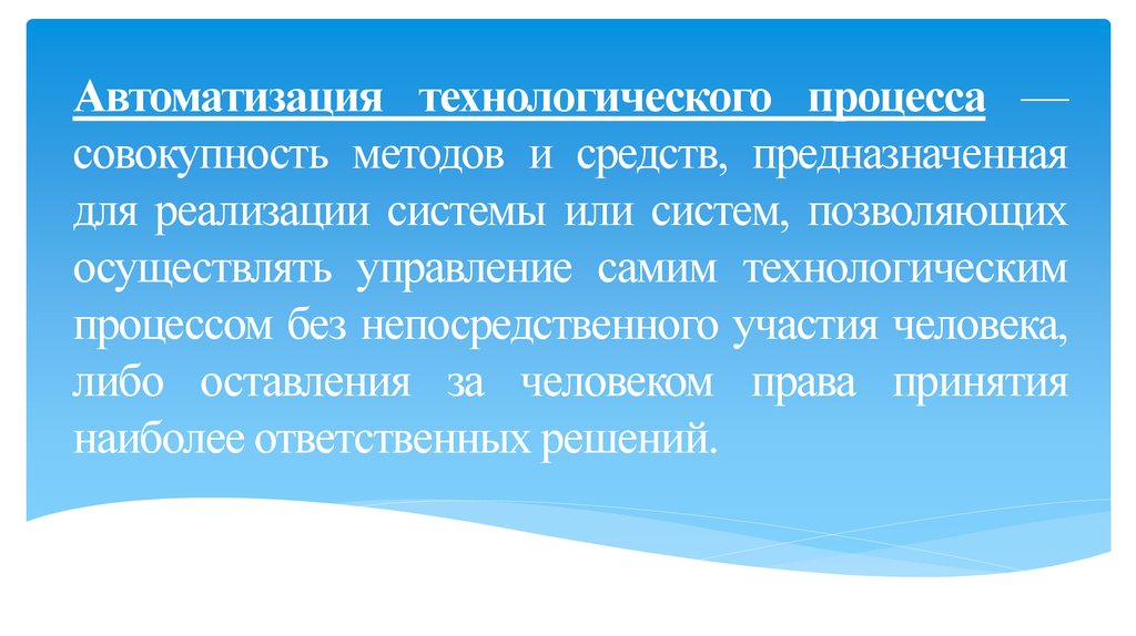 Автоматизация технологического процесса —совокупность методов и средств, предназначенная