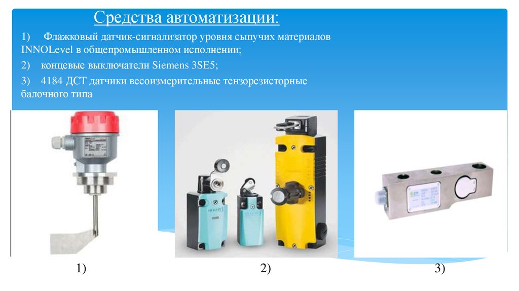 Средства автоматизации:1) Флажковый датчик-сигнализатор уровня сыпучих материалов
