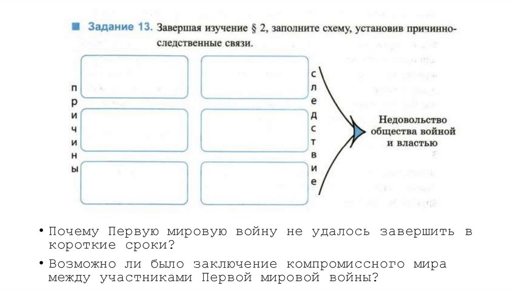 • Почему Первую мировую войну не удалось завершить вкороткие сроки?
