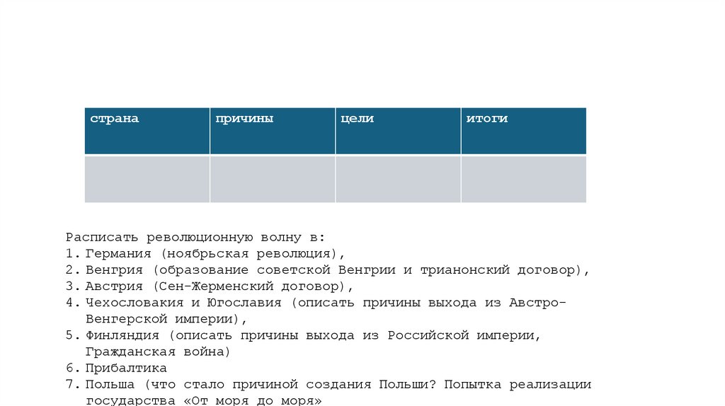 7. Польша (что стало причиной создания Польши? Попытка реализации