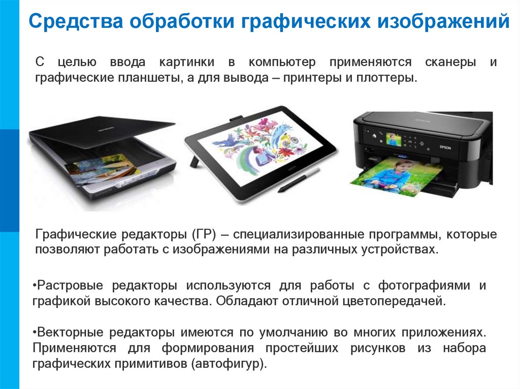графические планшеты, а для вывода — принтеры и плоттеры.