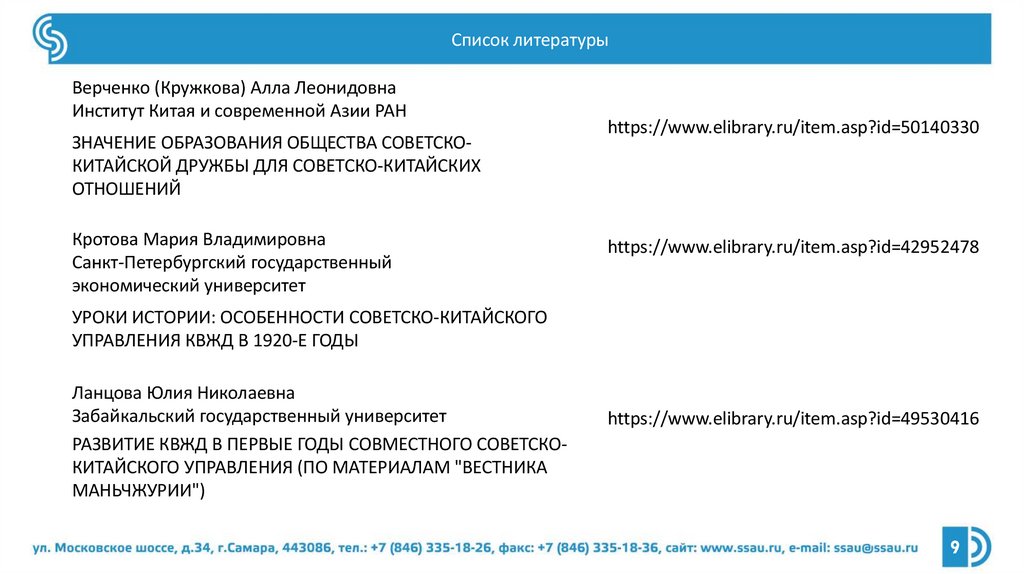 Список литературыВерченко (Кружкова) Алла Леонидовна