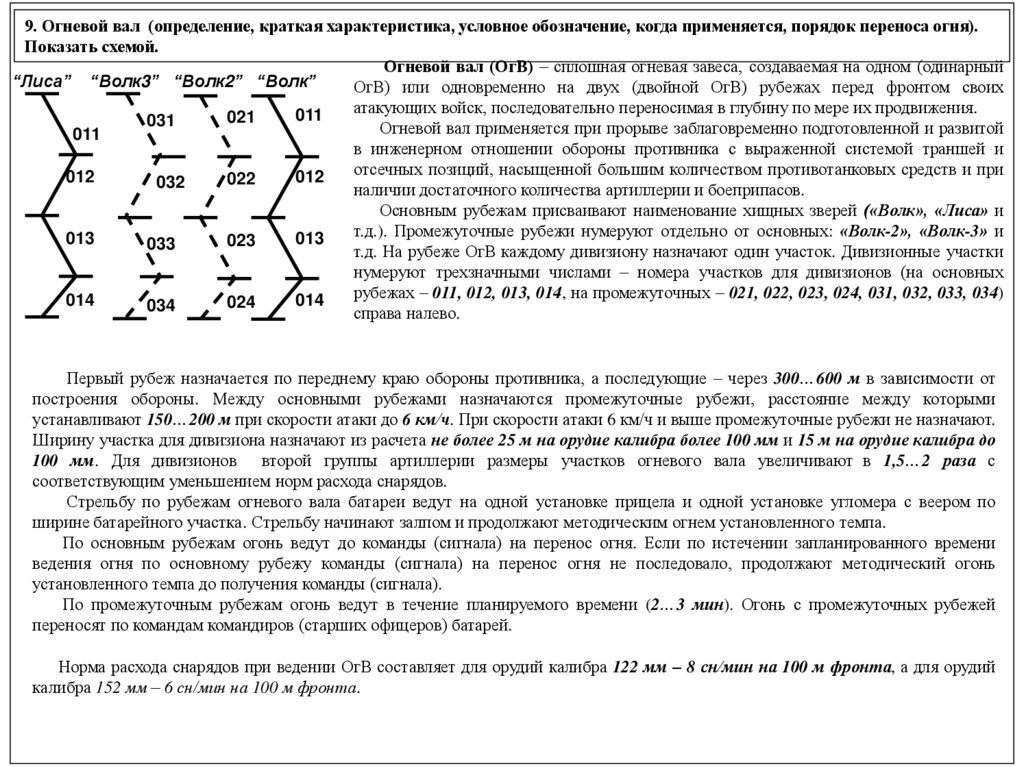 Норма расхода снарядов при ведении ОгВ составляет для орудий калибра 122 мм – 8 сн/мин на 100 м фронта, а для орудий