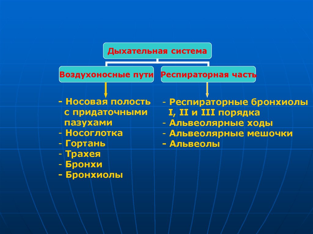 Включает:1. Респираторные бронхиолы I, II, III порядка