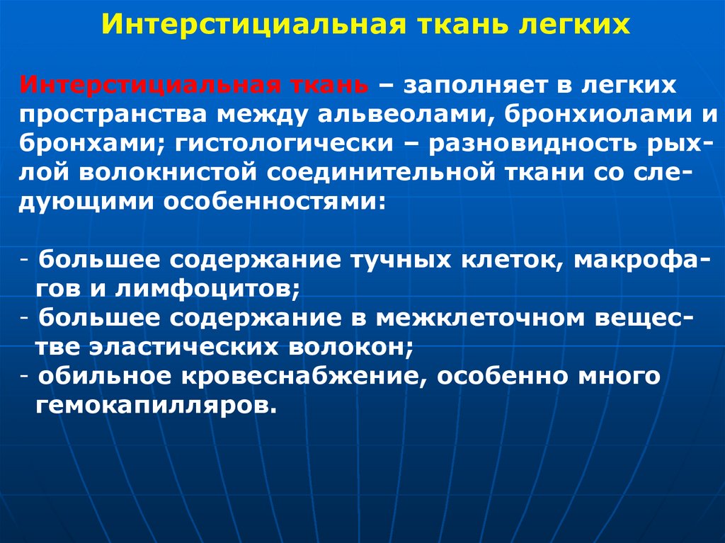 Интерстициальная ткань легкихИнтерстициальная ткань – заполняет в легких