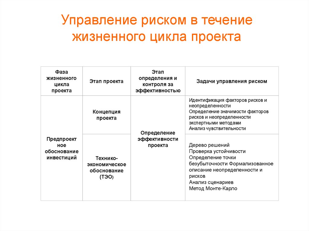 Управление риском в течениежизненного цикла проекта
