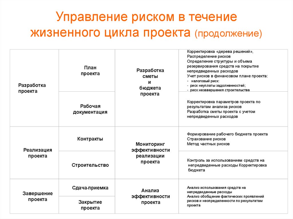 Управление риском в течениежизненного цикла проекта (продолжение)