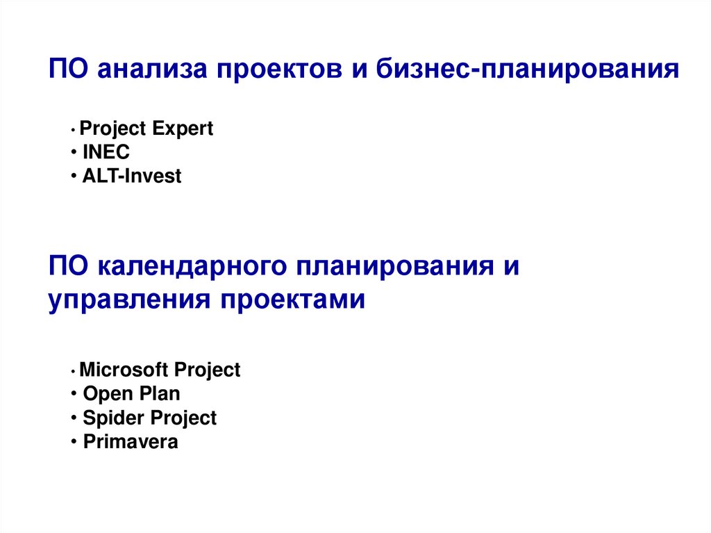 ПО анализа проектов и бизнес-планирования• Project Expert