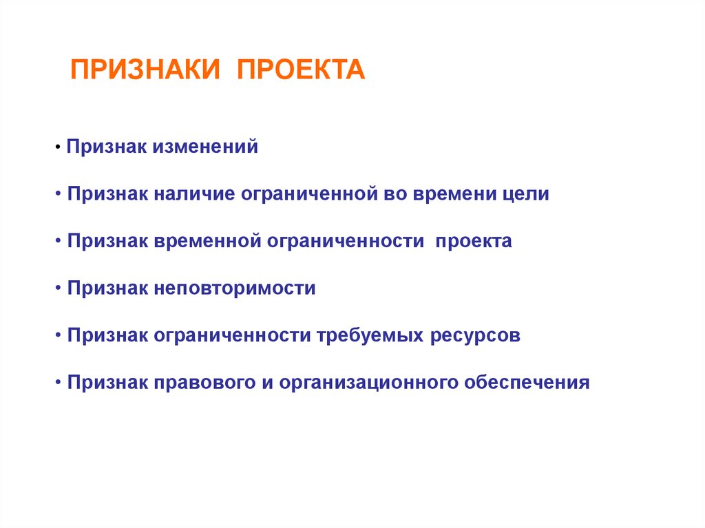 ПРИЗНАКИ ПРОЕКТА• Признак изменений