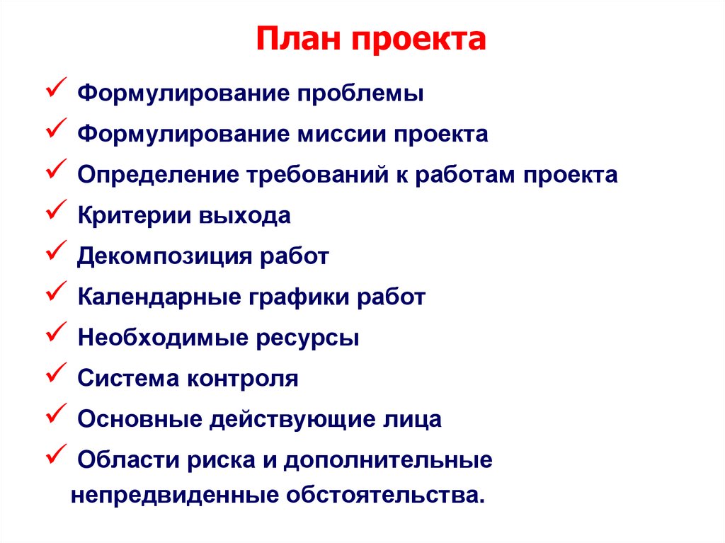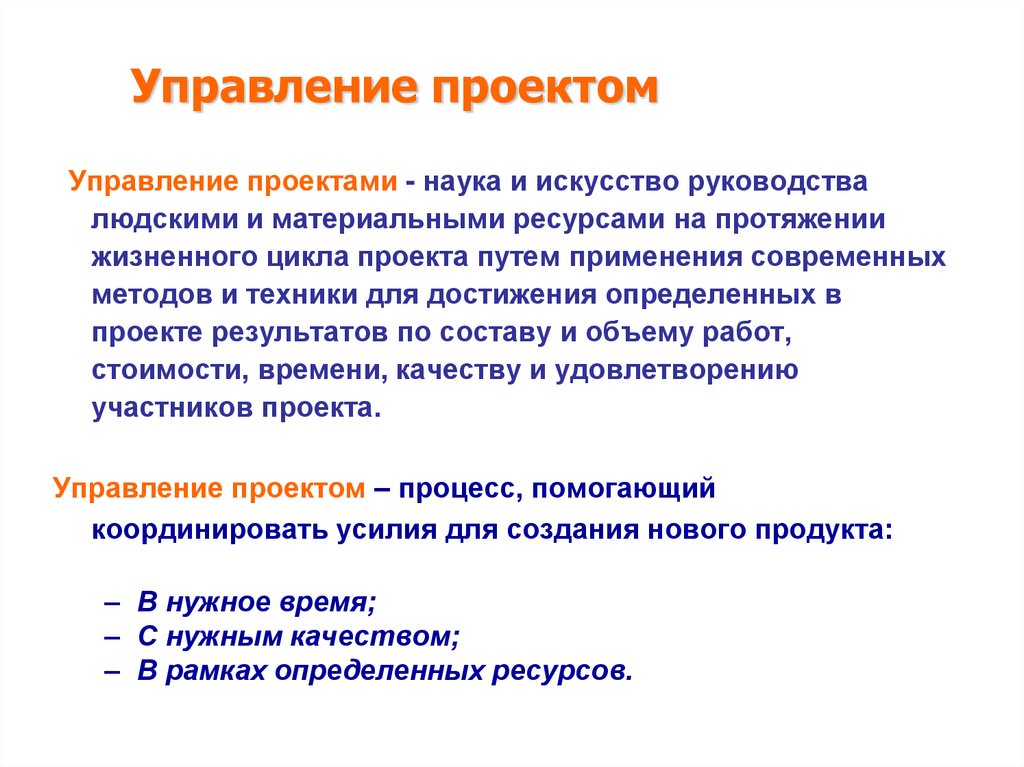 проекта и подведение его к упорядоченному финалу.
