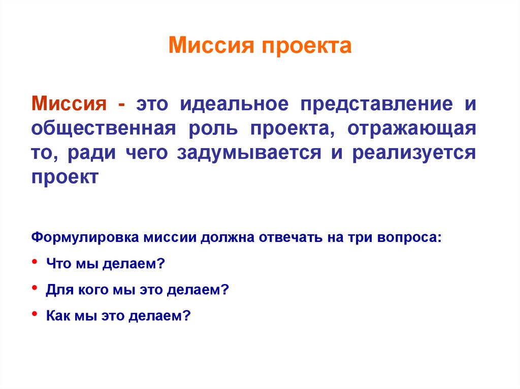 Формулировка миссии должна отвечать на три вопроса: