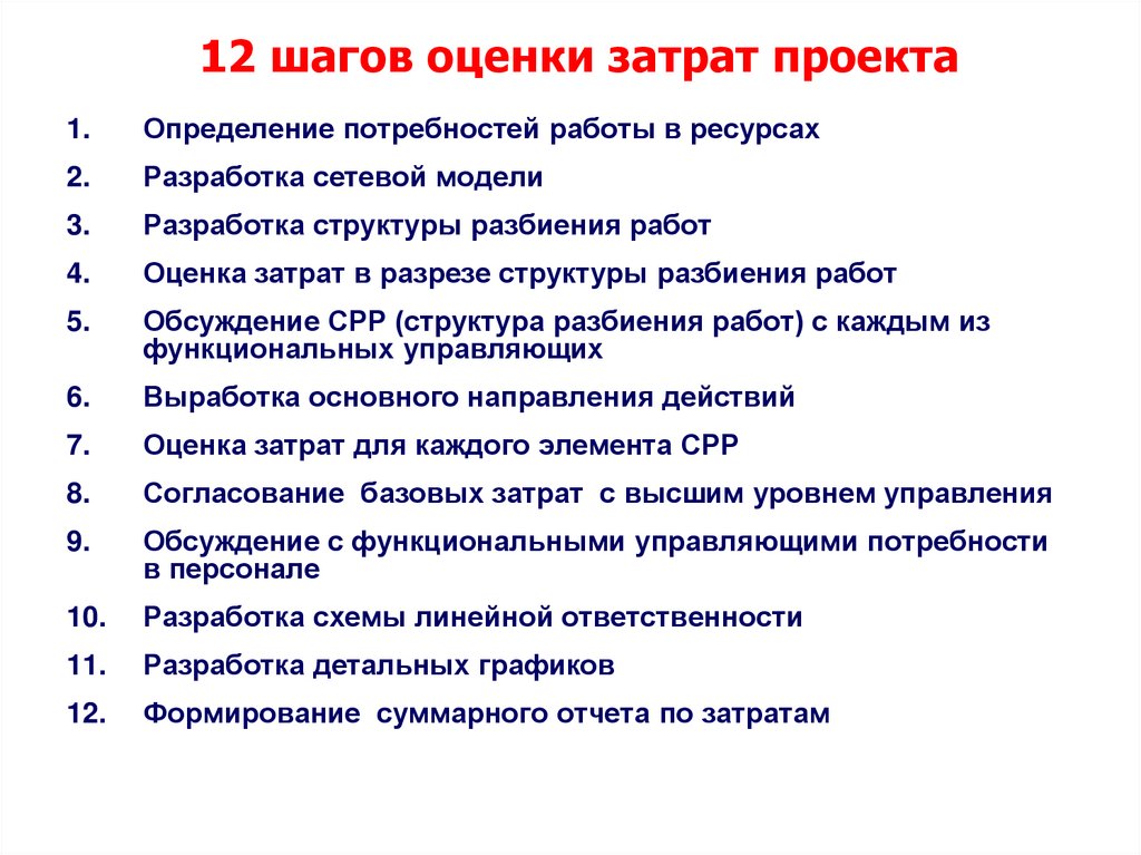 Разработка сметы проекта с учетом