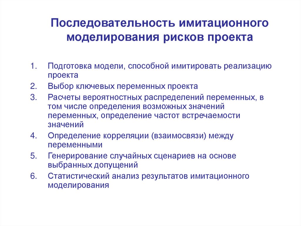 Последовательность имитационногомоделирования рисков проекта
