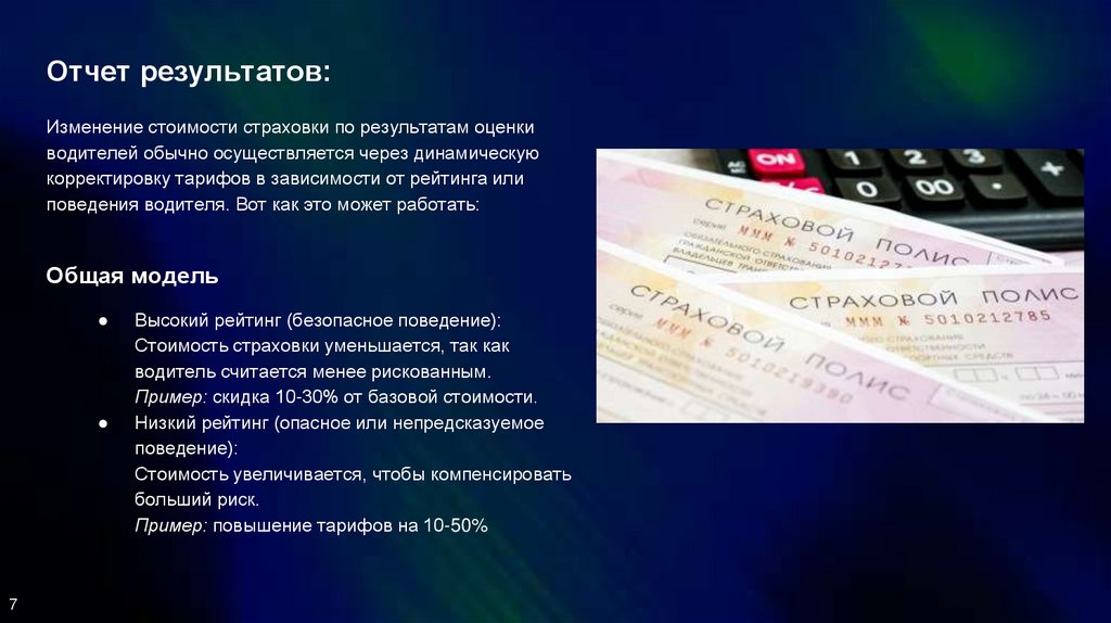 Отчет результатов:Изменение стоимости страховки по результатам оценки