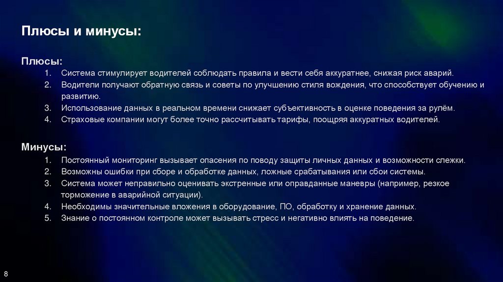 Система стимулирует водителей соблюдать правила и вести себя аккуратнее, снижая риск аварий.