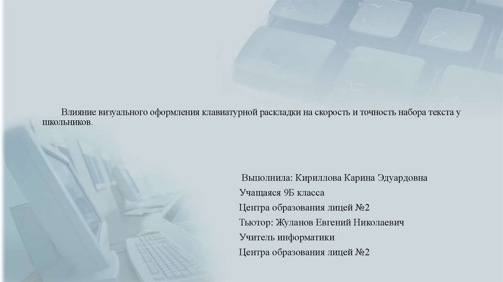 Влияние визуального оформления клавиатурной раскладки на скорость и точность набора текста ушкольников.