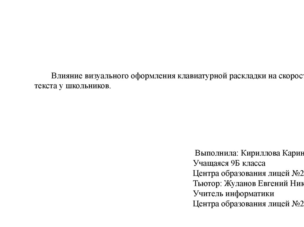Влияние визуального оформления клавиатурной раскладки на скоросттекста у школьников.