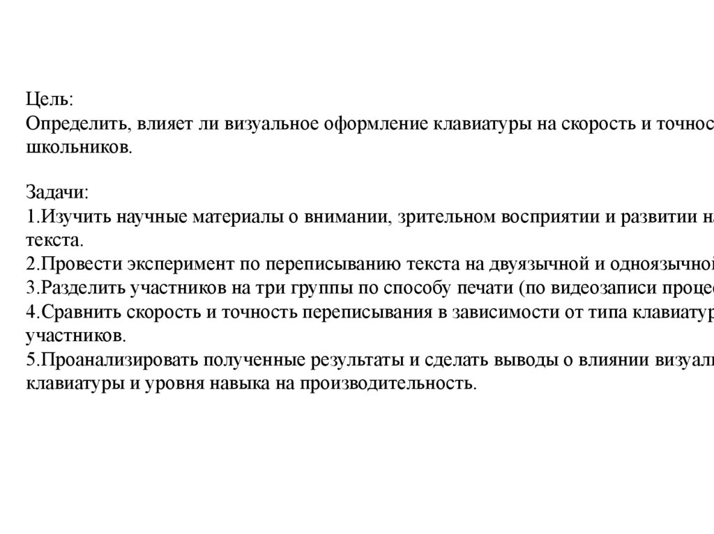 Цель:Определить, влияет ли визуальное оформление клавиатуры на скорость и точност