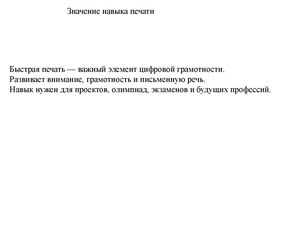 Значение навыка печатиБыстрая печать — важный элемент цифровой грамотности.