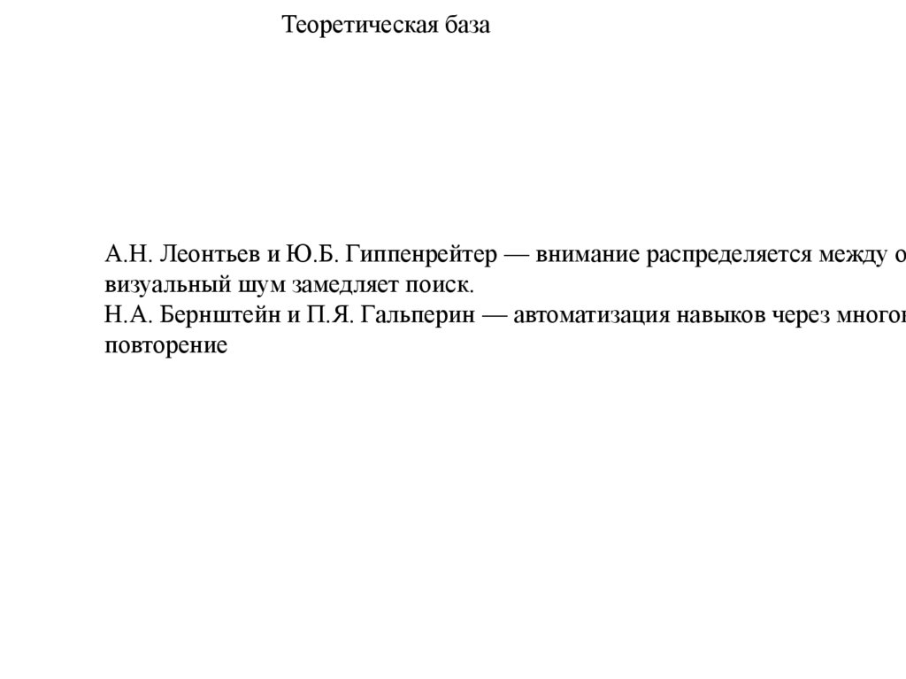 Теоретическая базаА.Н. Леонтьев и Ю.Б. Гиппенрейтер — внимание распределяется между об