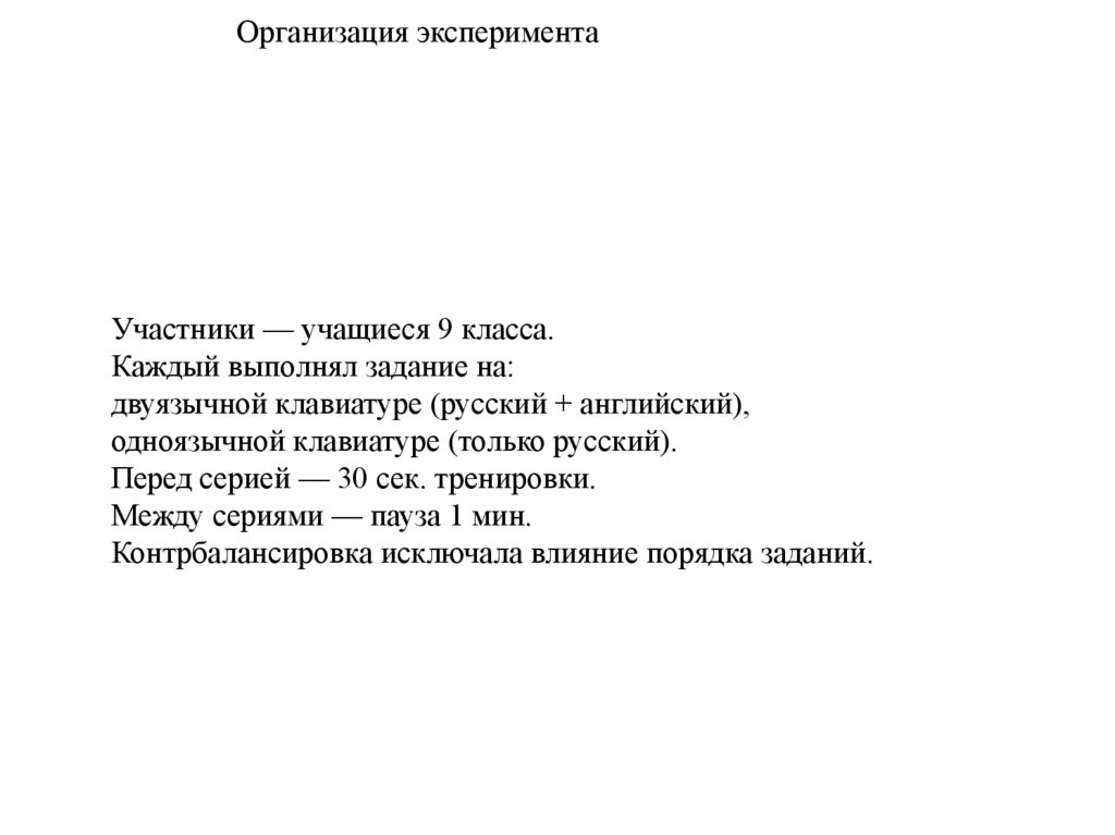 2.Провести эксперимент по переписыванию текста на двуязычной и одноязычной