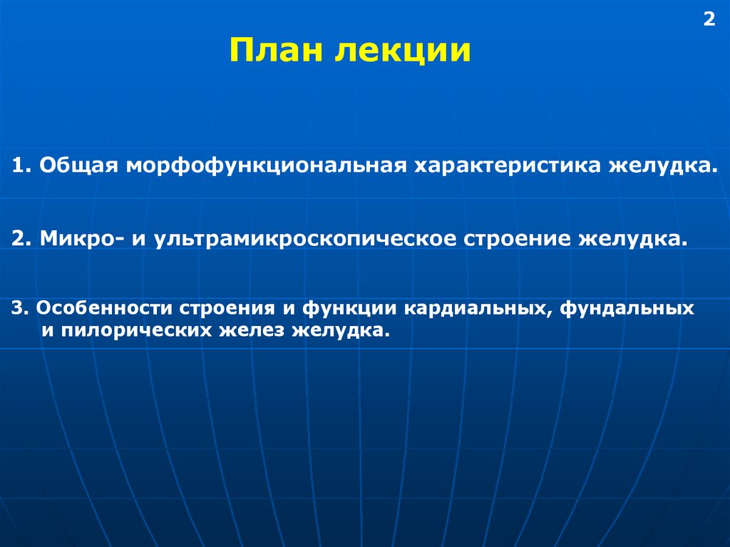 2. Микро- и ультрамикроскопическое строение желудка.