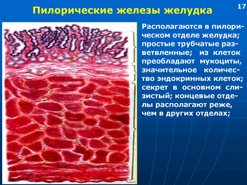 и пилорических желез желудка.