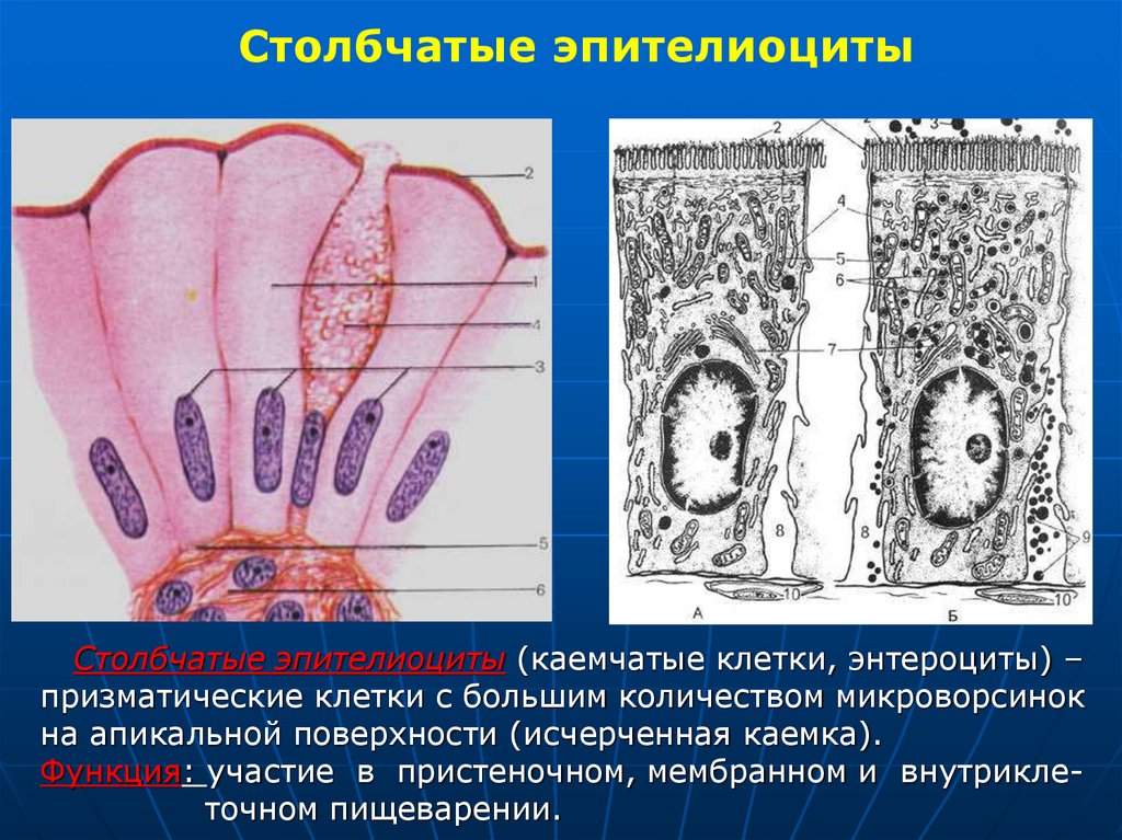 Столбчатые эпителиоцитыСтолбчатые эпителиоциты (каемчатые клетки, энтероциты) –
