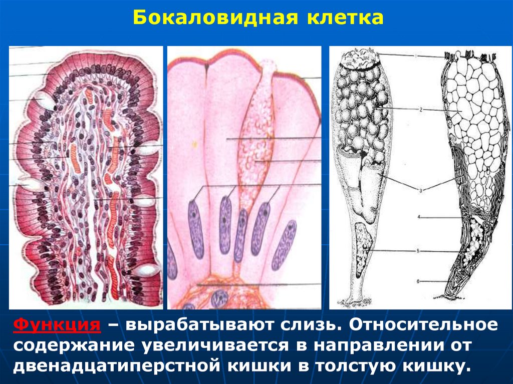 Бокаловидная клеткаФункция – вырабатывают слизь. Относительное