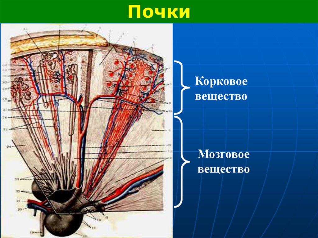 почки, половой системы.