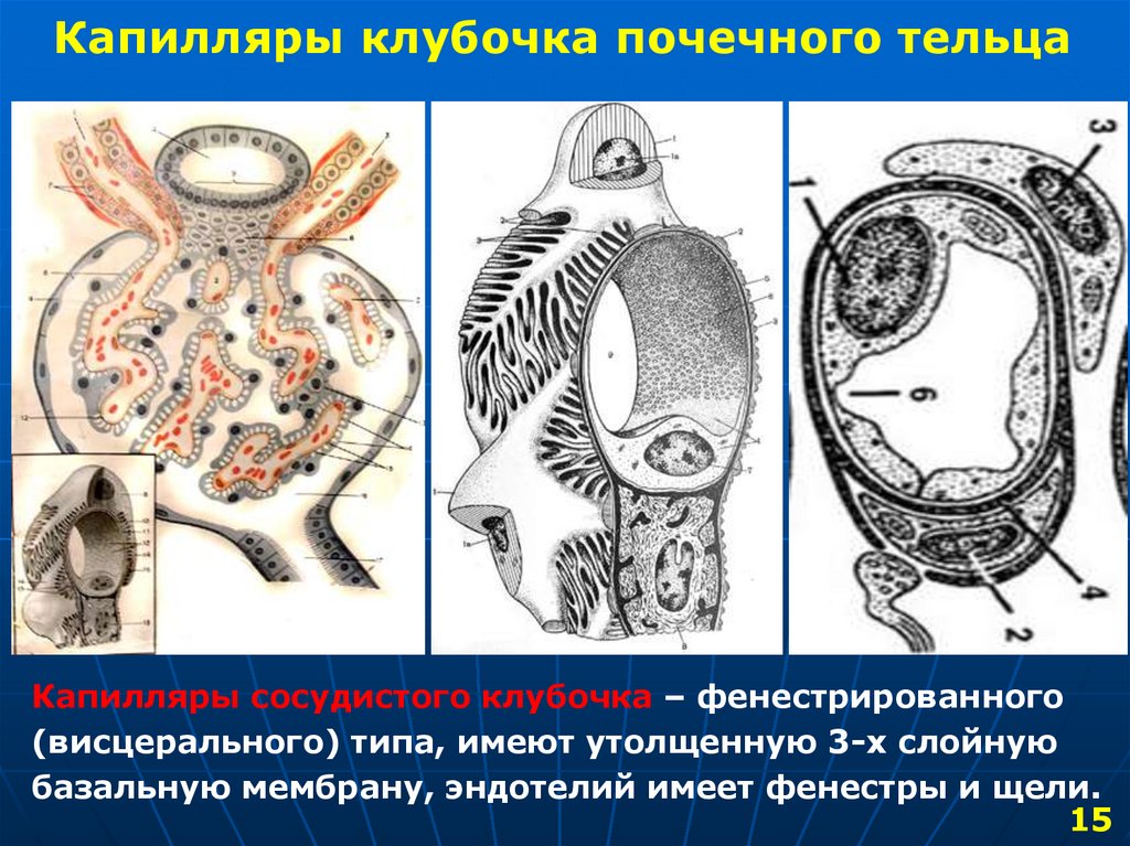 базальную мембрану, эндотелий имеет фенестры и щели.