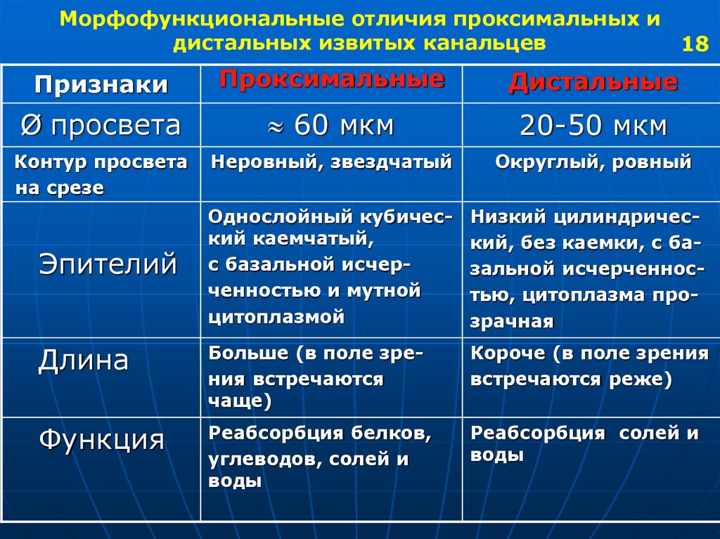 Морфофункциональные отличия проксимальных идистальных извитых канальцев