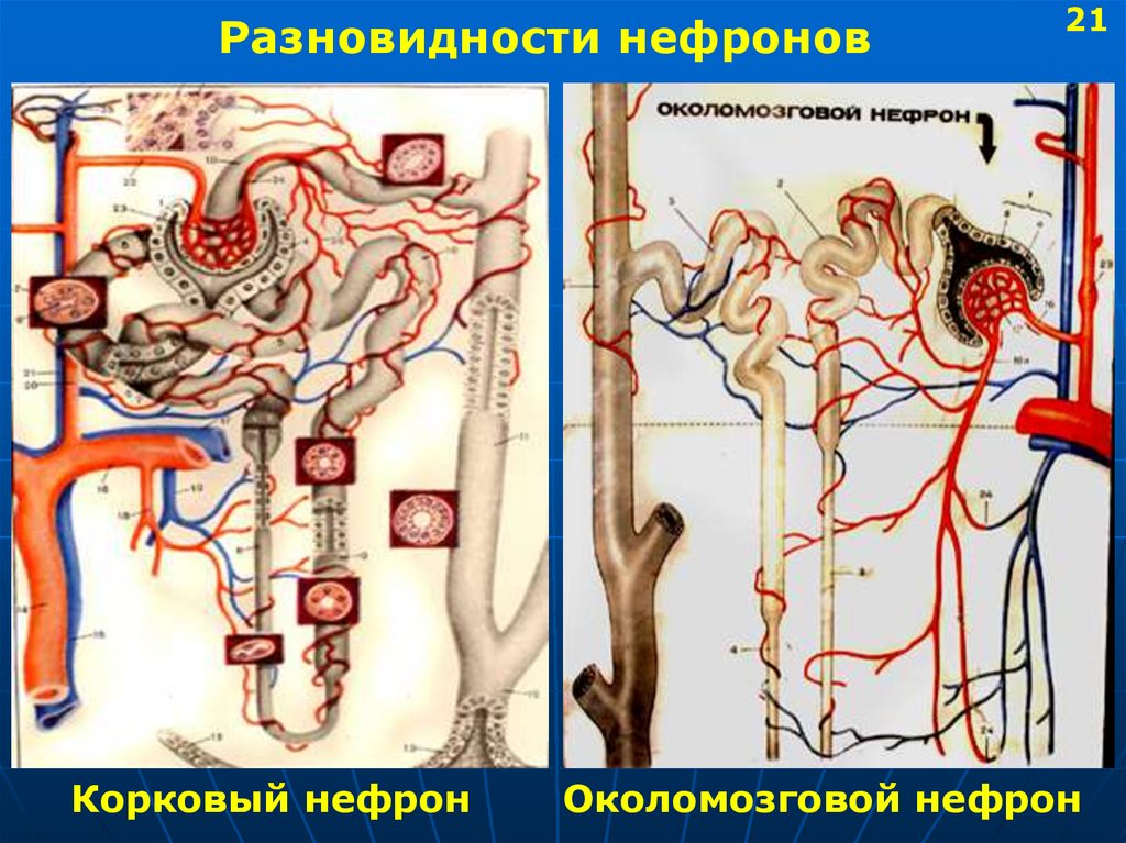 Разновидности нефроновКорковый нефрон