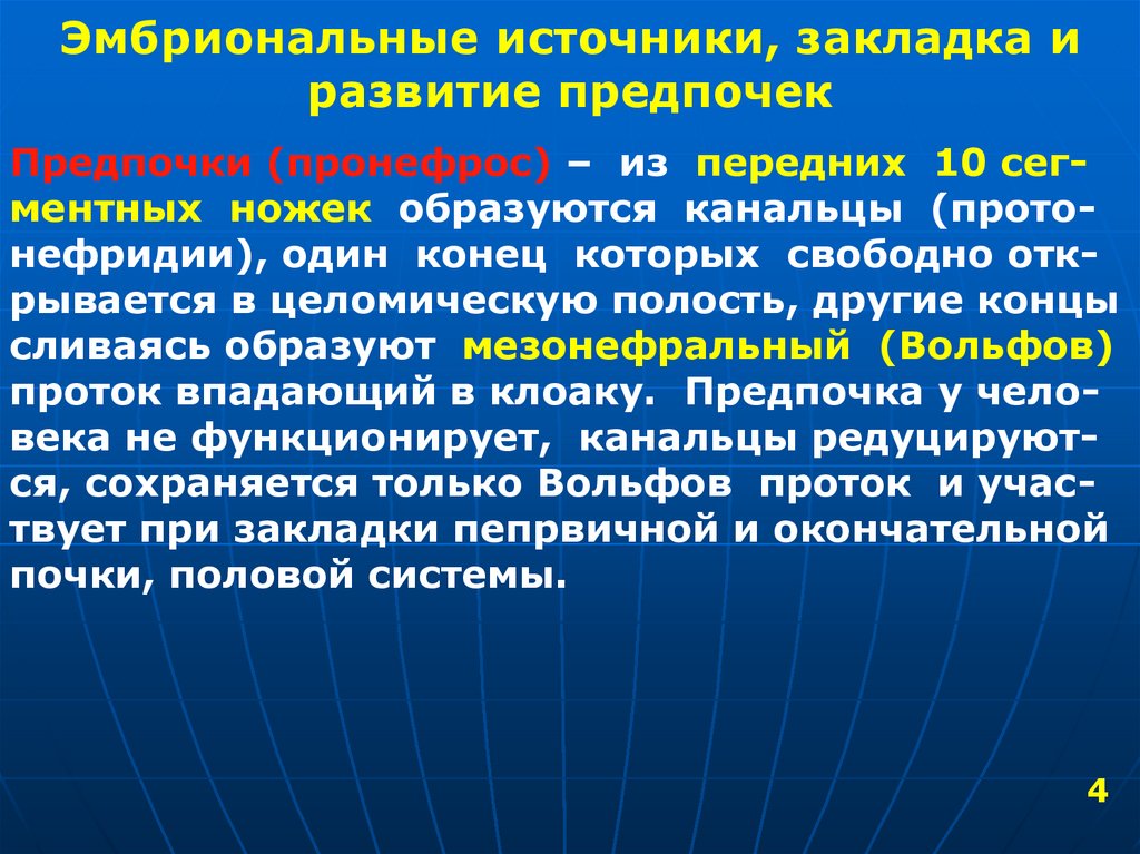 Эмбриональные источники, закладка иразвитие предпочек