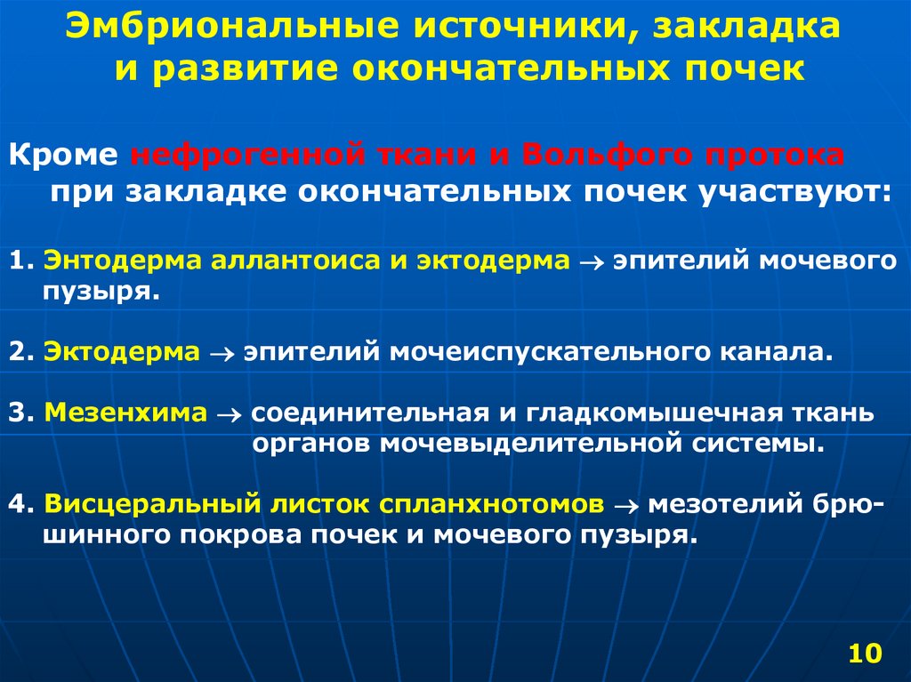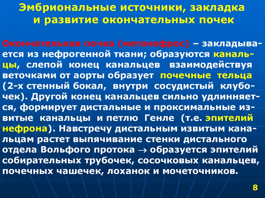 Эмбриональные источники, закладкаи развитие окончательных почек