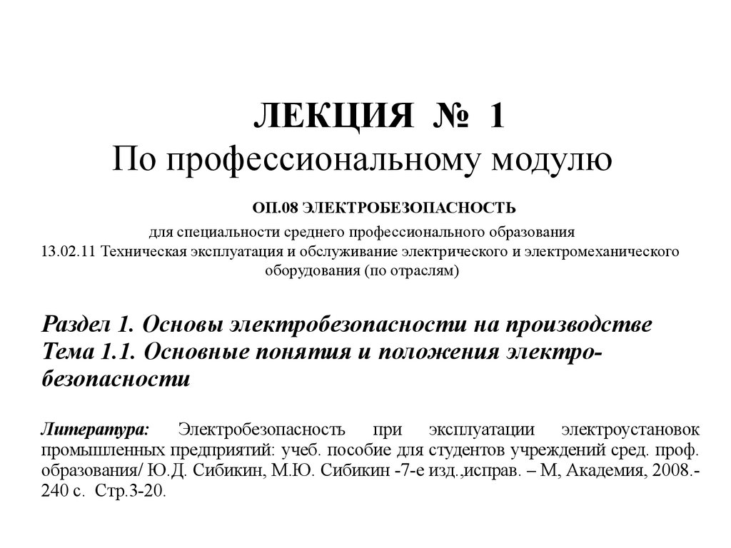 Тема 1.1. Основные понятия и положения электробезопасности
