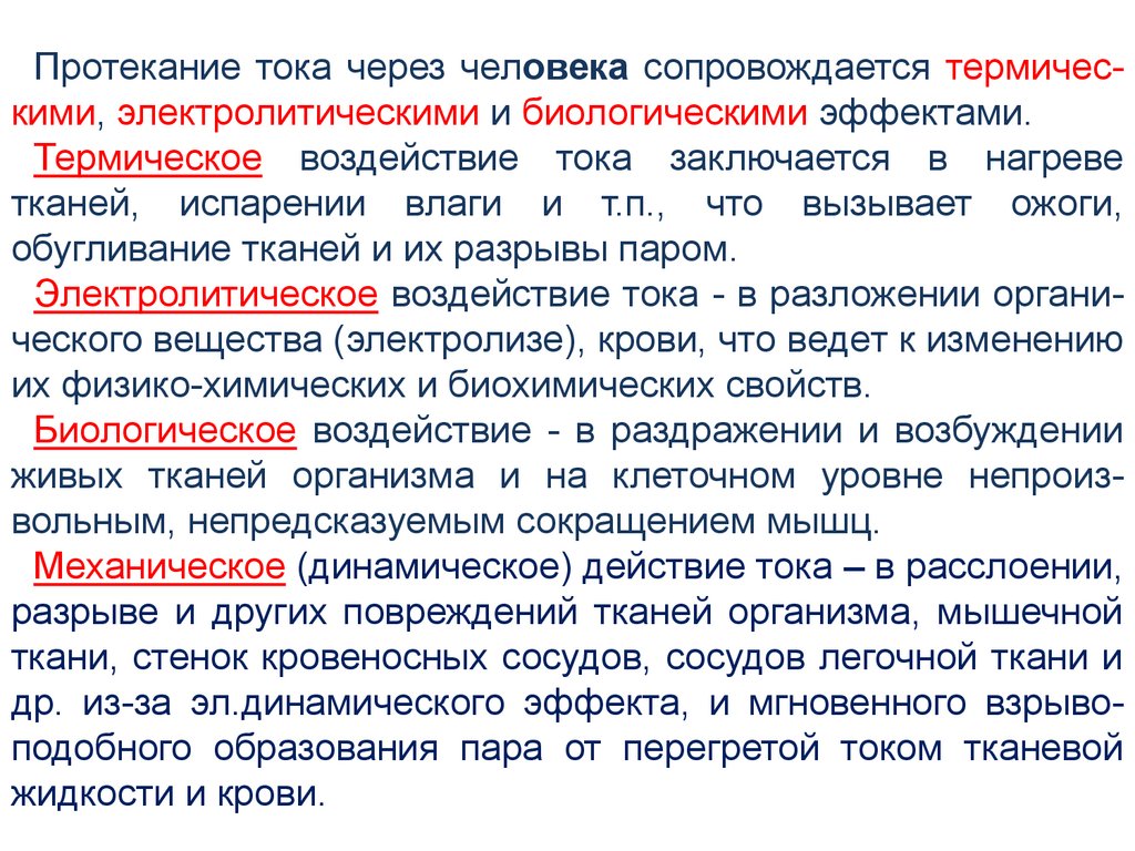 действия электротока;