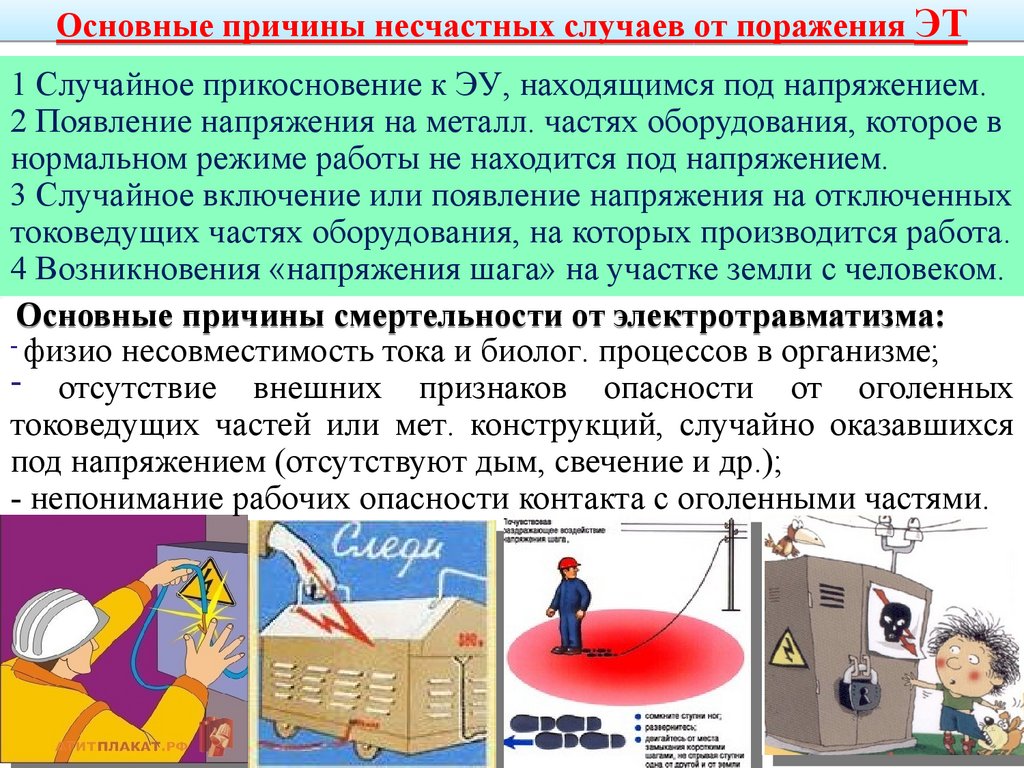 Основные причины смертельности от электротравматизма: