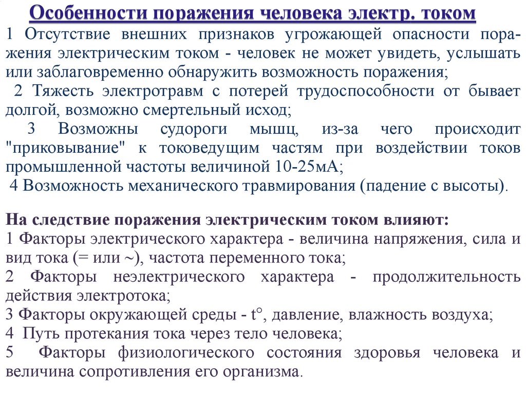 1 Факторы электрического характера - величина напряжения, сила и