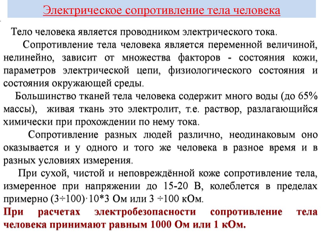 Сопротивление тела человека является переменной величиной,