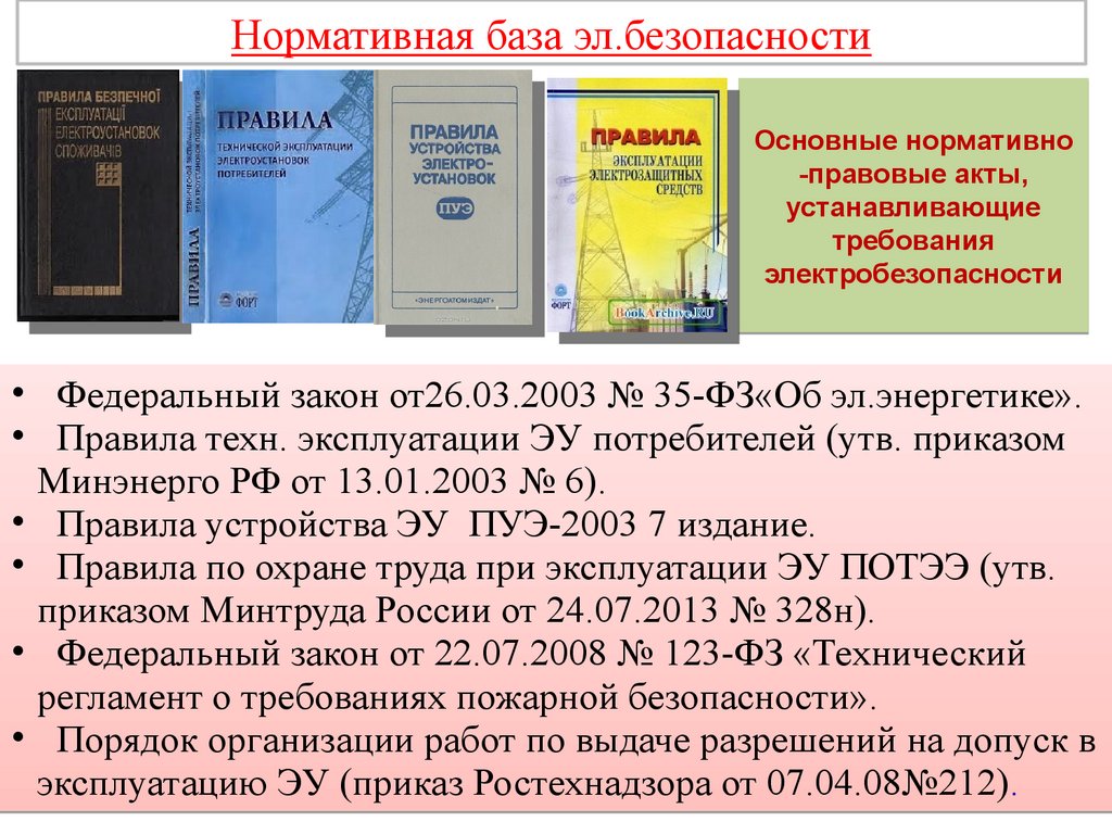 Нормативная база эл.безопасностиОсновные нормативно