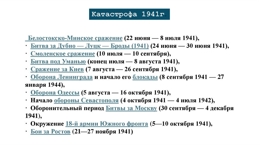 Катастрофа 1941г.Белостокско-Минское сражение (22 июня — 8 июля 1941),