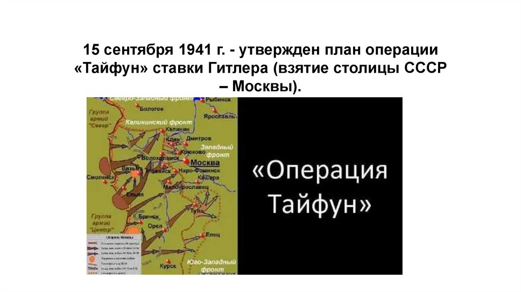 15 сентября 1941 г. - утвержден план операции«Тайфун» ставки Гитлера (взятие столицы СССР