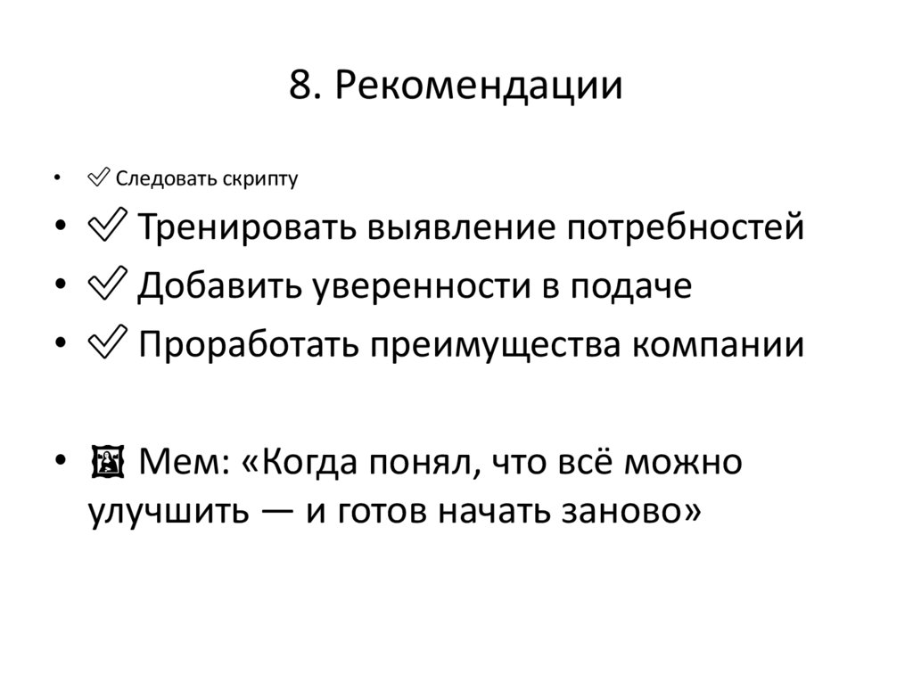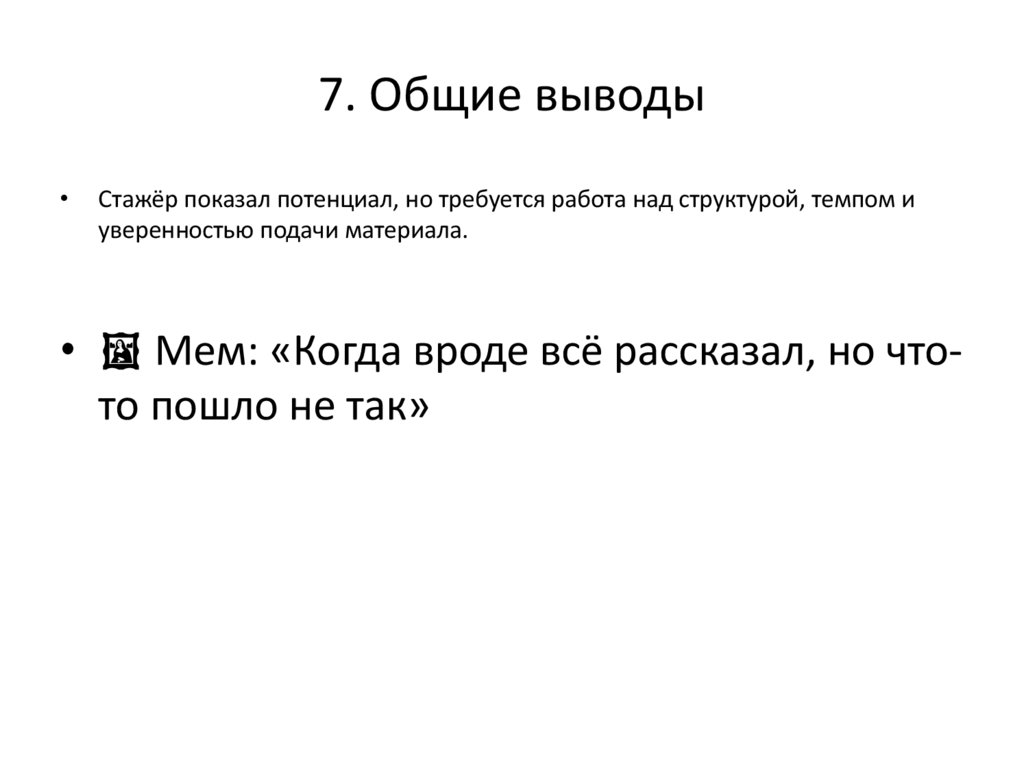 Краткий анализ выступления стажёра и рекомендации по улучшению